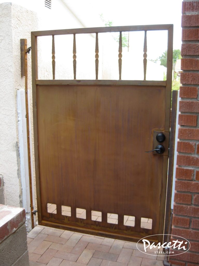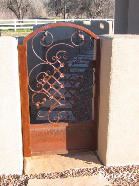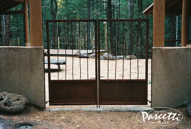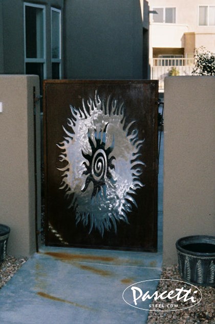 Custom gate design do much more than provide beauty to homes and landscapes; they also add security and privacy. Whether it’s a simple steel picket gate for a patio, or one of our custom forged ornamental steel gates, we’ll help you select the right gate and latch combination for your setting. Our plasma cut driveway gates are fabricated entirely by hand from raw material to finished product. Every individual gate is unique in its own way.