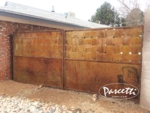Gates do much more than provide security and privacy; they also add beauty to homes and landscapes. Whether it’s a simple steel picket gate for a patio or one of our custom forged ornamental steel gates, we’ll help you select the right gate and latch combination for your setting. Our plasma-cut driveway gates are fabricated entirely by hand from raw material to finished product. Every individual gate is unique in its own way.