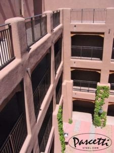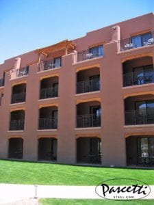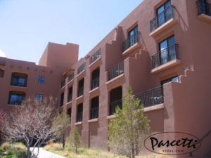 Pascetti Steel Design has fabricated commercial anodized aluminum railings custom-made for the Hyatt Tamaya resort in Bernalillo, New Mexico.