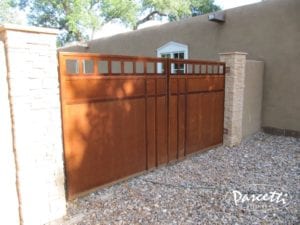 Our custom gates are designed for courtyards, patios, entries, pools and more with a wide range of styles from picket gates, security gates, custom designed gates and gates for ornamental garden fencing. Choose from several latch styles to suit your needs. Any style can be converted to a pool gate with self- closing hinges and locks to meet code and safety requirements. Top corners of all gates are mitered, welded, and sanded smooth: plastic caps are never used at Pascetti Steel.