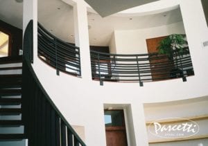 Custom residential modern powder-coated steel stair and balcony rails located in Albuquerque, New Mexico.