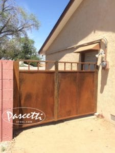 - Choose from a variety of finishes from paint, powder coated or natural rusted metal gate like this one