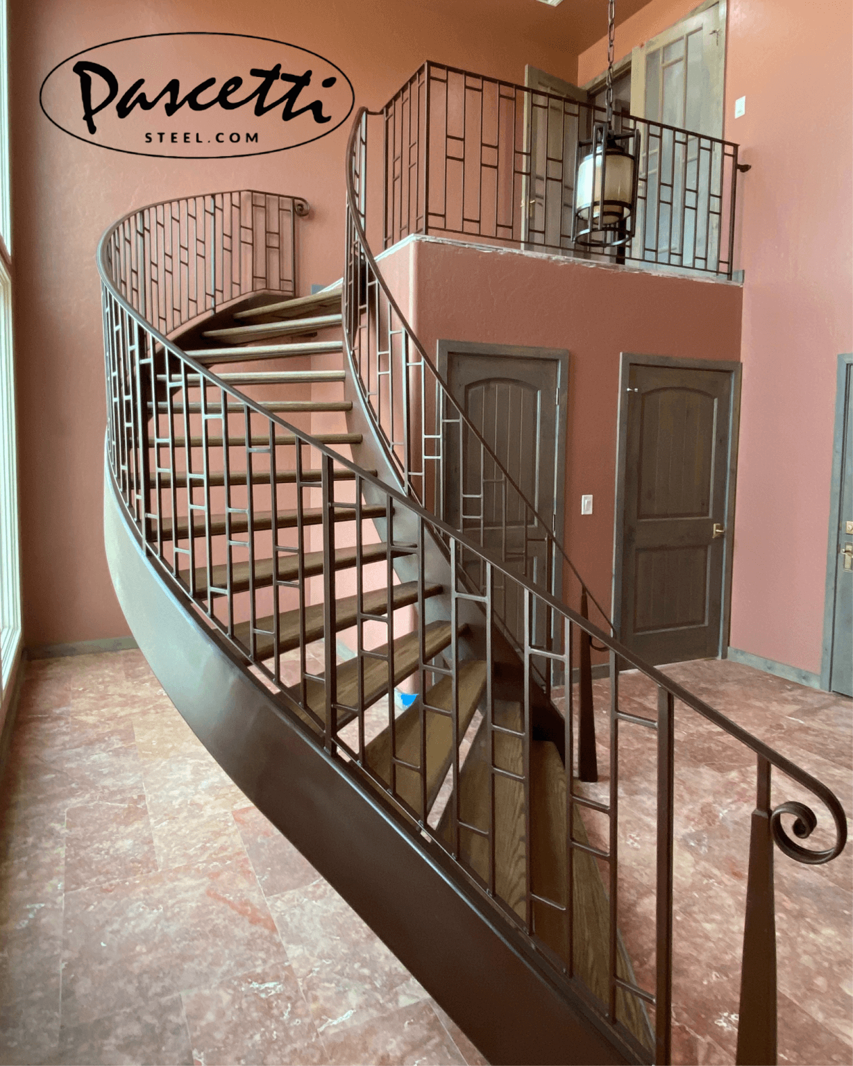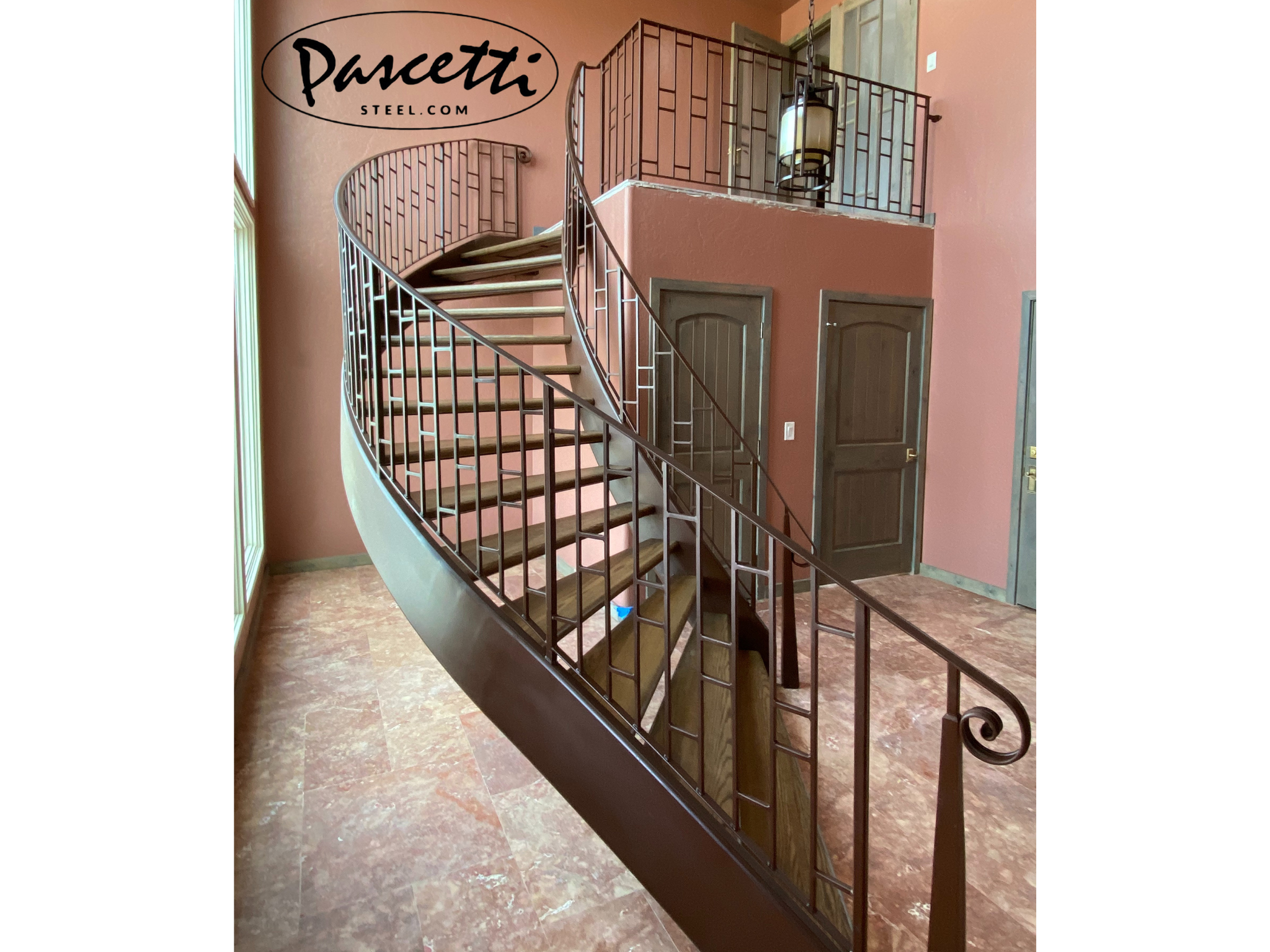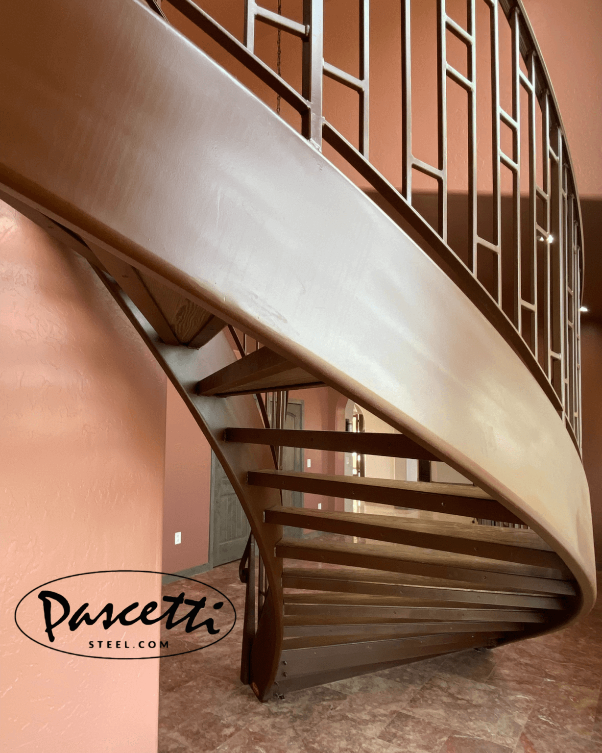 If you’re interested in this Curved Monument stair, residential, commercial, or any other unique curved stair; please give us a call at 505-341-2900 or email us at info@pascettisteel.com.