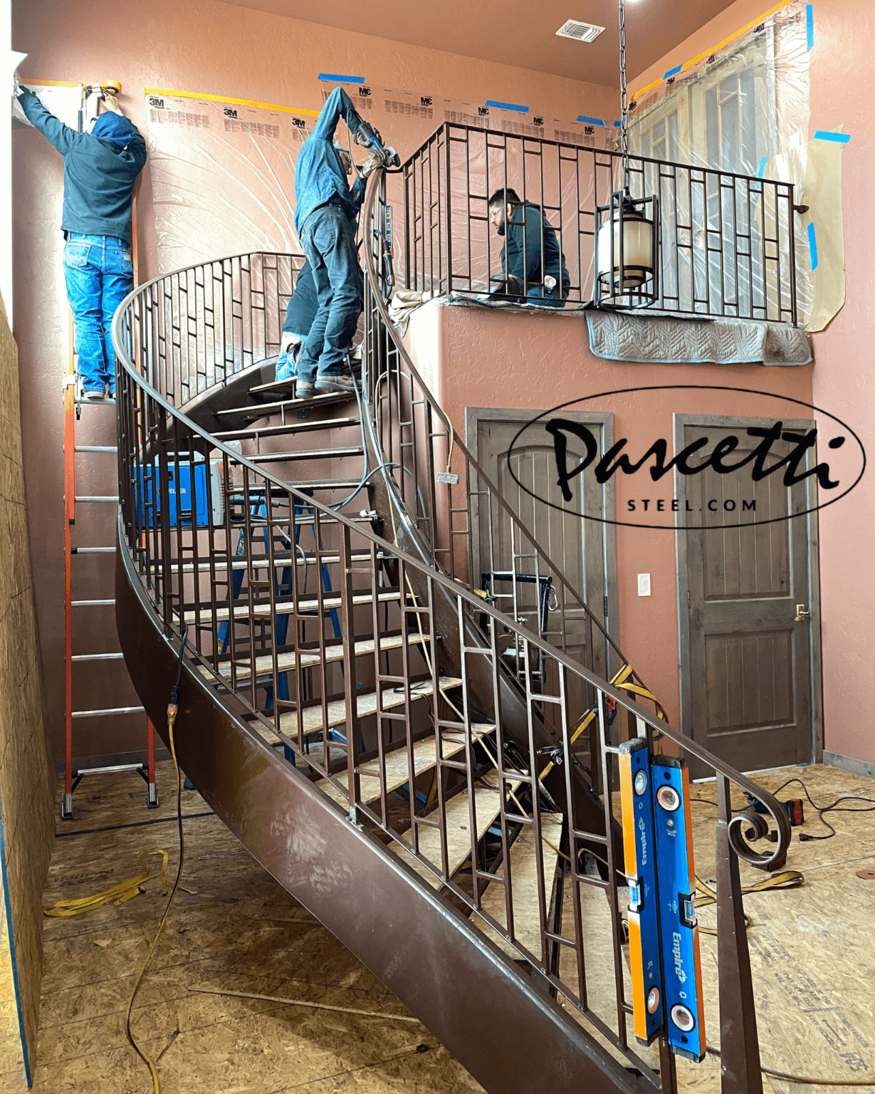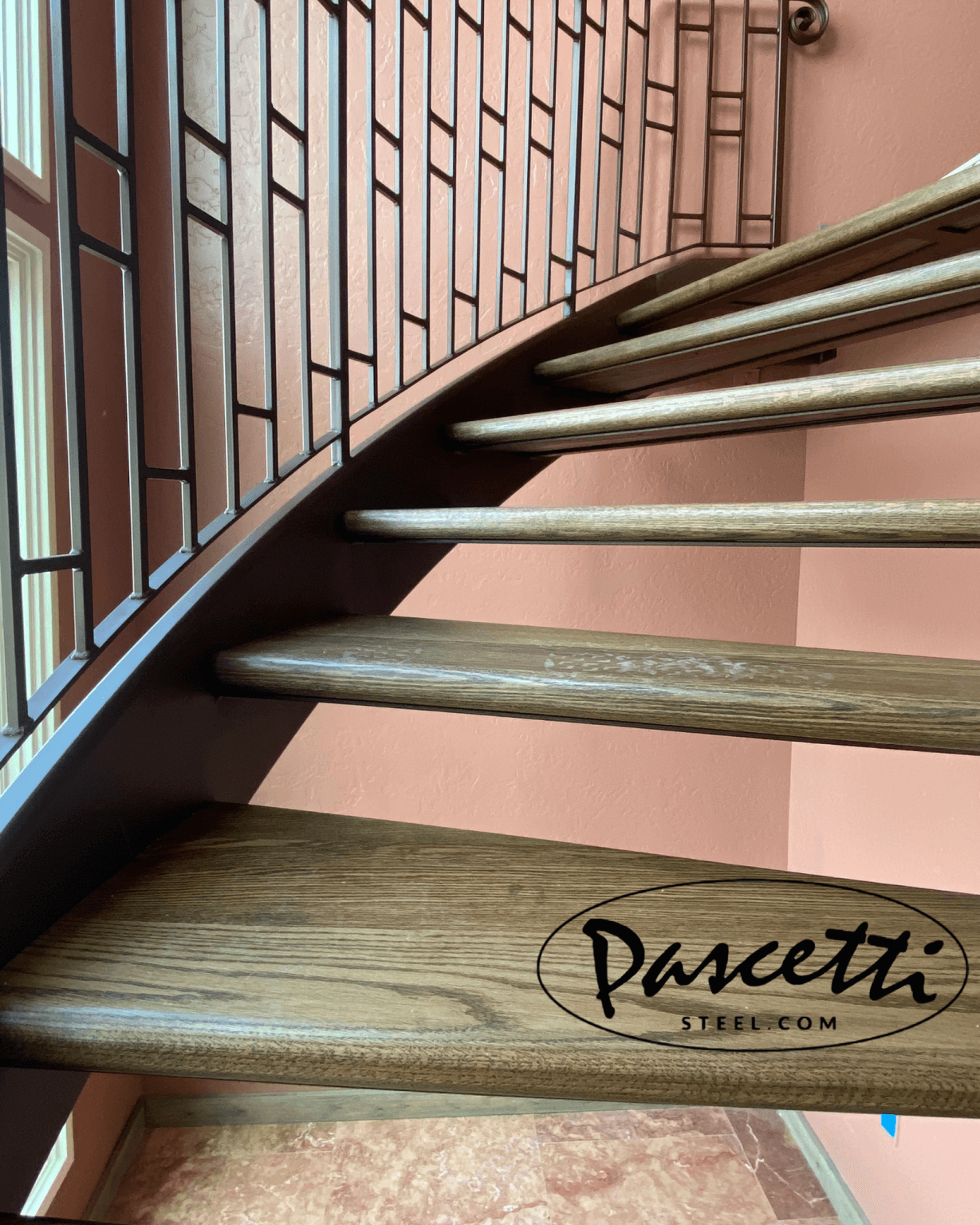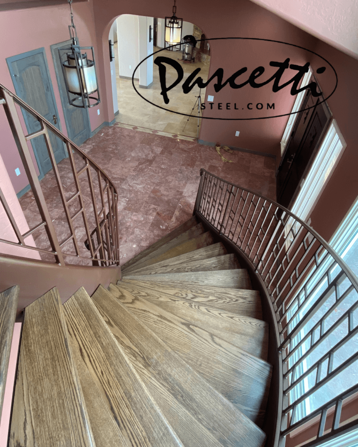 If you’re interested in this Curved Monument stair, residential, commercial, or any other unique curved stair; please give us a call at 505-341-2900 or email us at info@pascettisteel.com.