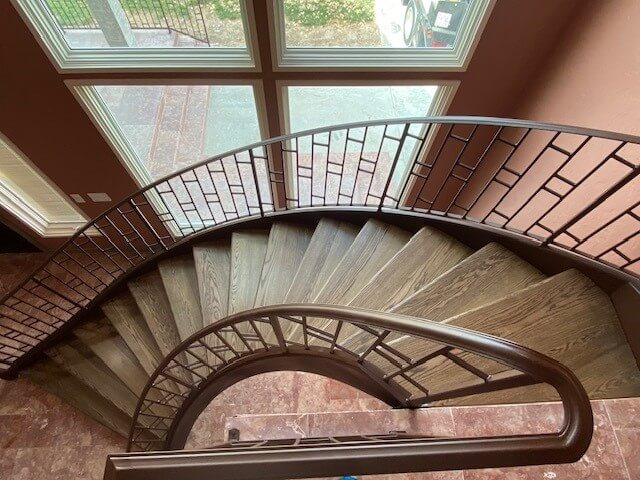 From traditional curved railings to contemporary curved railings our work is meticulous and detailed from start to finish. Solid wood stair treads. completed this helix stair and the open risers give a sense of airiness.
