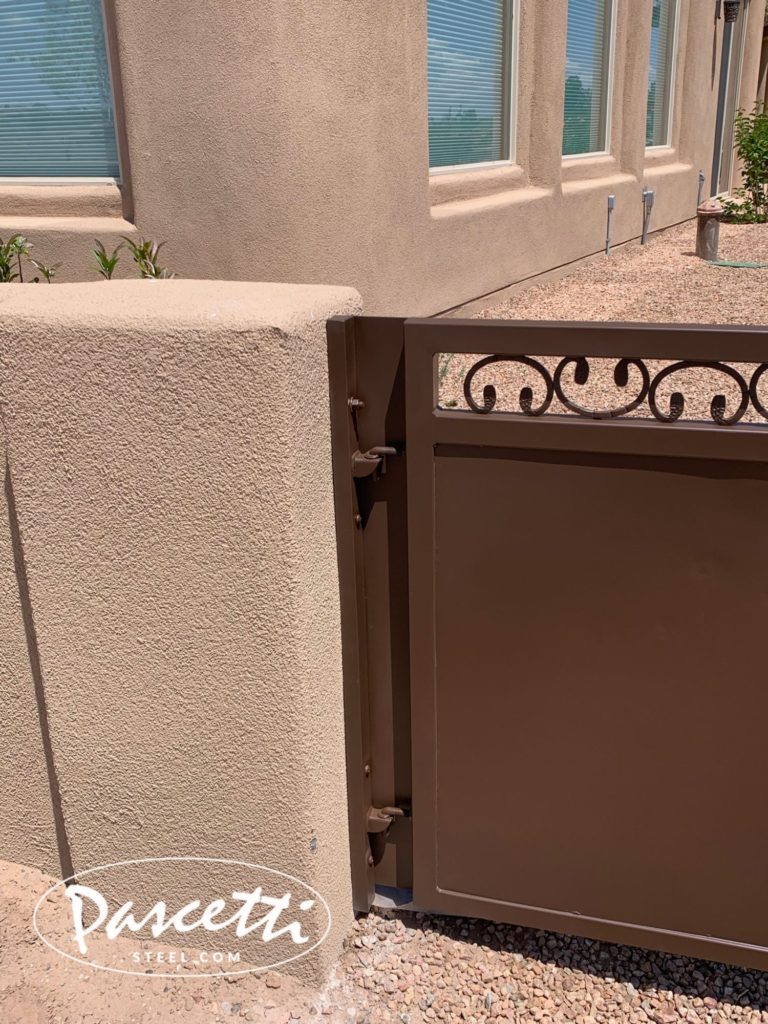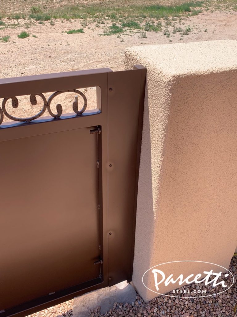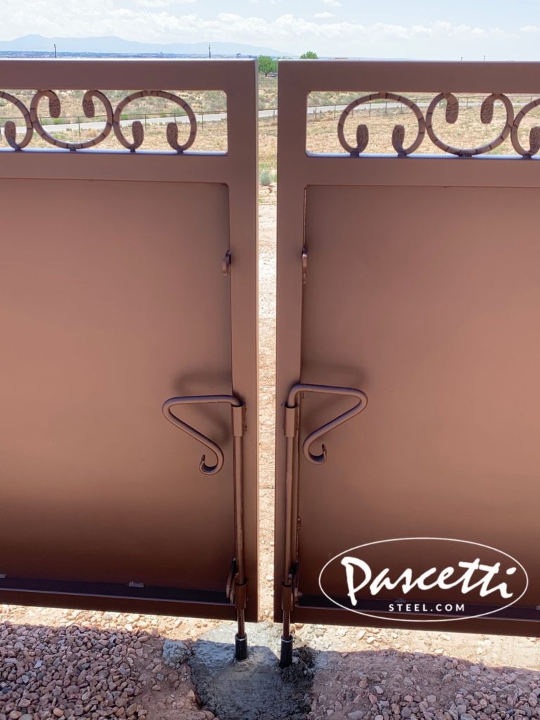 - Top corners of all gates are mitered, welded, and sanded smooth. Plastic caps are never used at Pascetti Steel.