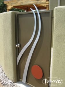 Our custom gates are designed for courtyards, patios, entries, pools and more with a wide range of styles from picket gates, security gates, custom designed gates and gates for ornamental garden fencing. Choose from several latch styles to suit your needs. Any style can be converted to a pool gate with self- closing hinges and locks to meet code and safety requirements. Top corners of all gates are mitered, welded, and sanded smooth: plastic caps are never used at Pascetti Steel.