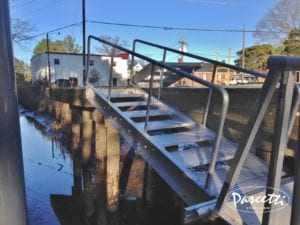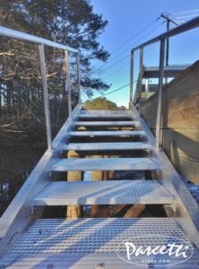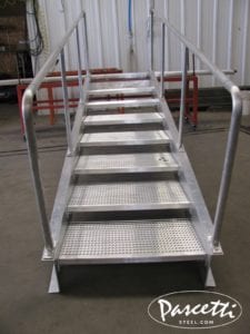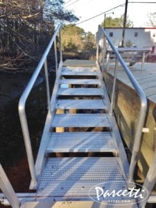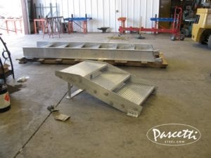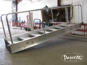 Pascetti Steel recently completed a kayak launch system for a client complete with perforated ADA compliant treads, custom mounting brackets to attach to wood dock, stainless steel hardware, aluminum handrails with all sharp edges sanded and eased. Pascetti Steel Design provided complete packaging on a custom pallet to the jobsite with complete shop drawings.
