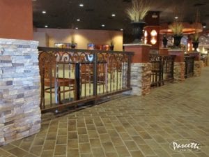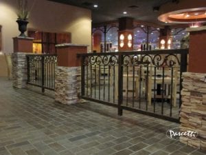 Santa Ana Star Casino in Bernalillo, NM underwent a casino-wide remodel managed by Jaynes Corporation. Pascetti Steel Design was contracted to fabricate and install custom-forged railings and gates throughout the casino. These commercial railings and gates were installed at Sadie’s New Mexican Restaurant, a quick-service restaurant area, throughout the penny arcade, and within the Lounge 54 upscale bar, among other locations within the casino. Pascetti Steel Design offers a variety of styles and metals to create the perfect custom curved railings desired for your project. The railings we can create vary in functional design, anywhere from conventional industrial styles to something more detailed and artistic.