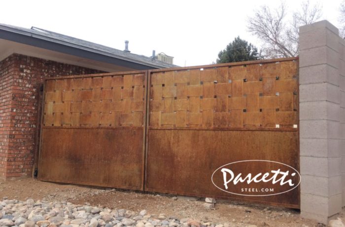 Custom square cut out steel driveway gates and large privacy panels with a rust finish. Gates do much more than provide security and privacy; they also add beauty to homes and landscapes. Whether it’s a simple steel picket gate for a patio, or one of our custom forged ornamental steel gates, we’ll help you select […]