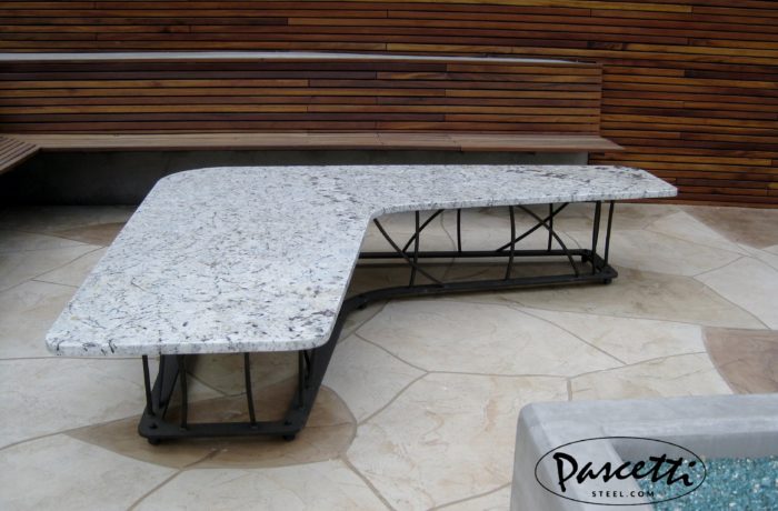 Outdoor steel coffee table with granite top and recessed casters for easy mobility. Unique metal fabrication is ideal for many projects and fabricating quality architectural steel elements is our specialty. Our experience and state of the art equipment enable us to create anything in steel. our products are also 100% made in the USA. […]